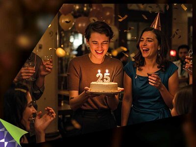 Félicitations pour votre 25e anniversaire ! Ce Bongo contient un large choix d'expériences en Belgique pour rendre ce jour spécial, seul ou en duo. Après tout, on n'a pas un quart de siècle tous les ans. Sentez l'adrénaline parcourir votre corps lors d'un saut à l'élastique ou d'un tour de karting, mettez les pieds sous la table lors d'un souper gastronomique dans un beau restaurant, réservez une nuit dans un bed & breakfast pittoresque ou détendez-vous pendant un massage bienfaisant, idéal pour un moment de relaxation. Quelle que soit l'expérience que vous choisirez parmi le large éventail proposé, elle sera mémorable !