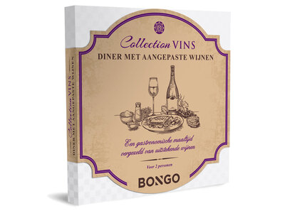 Een heerlijk diner met buitengewone wijnen wacht op twee fijnproevers aan tafel van een gastronomisch restaurant in België en elders in Europa. Getalenteerde chef-koks streven om de kunst van de gastronomie perfect te combineren met de beste wijnen. Met de Bongo Diner met aangepaste wijnen worden alle zintuigen geprikkeld.