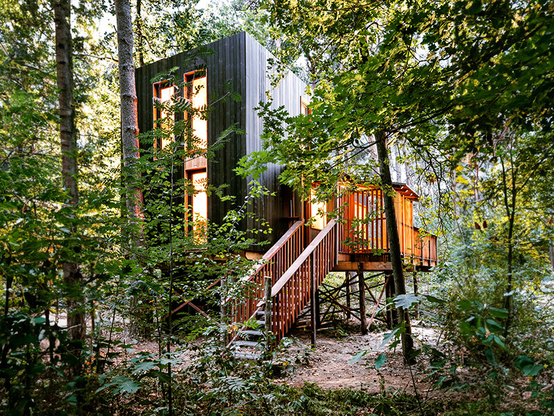 De boomhut heeft een driehoekige vorm, zodat je beneden ruimte hebt en boven een knusse slaapkamer onder het schuine dak. De Bosuil lijkt wel een blokkendoos in het groen, met van binnen een minimalistische inrichting. Ideaal voor een ontspannen verblijf in de bossen!